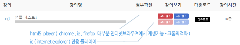 강의수강 전 샘플강의가 잘나오는지 확인하여 보시길 바랍니다